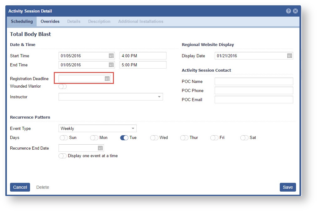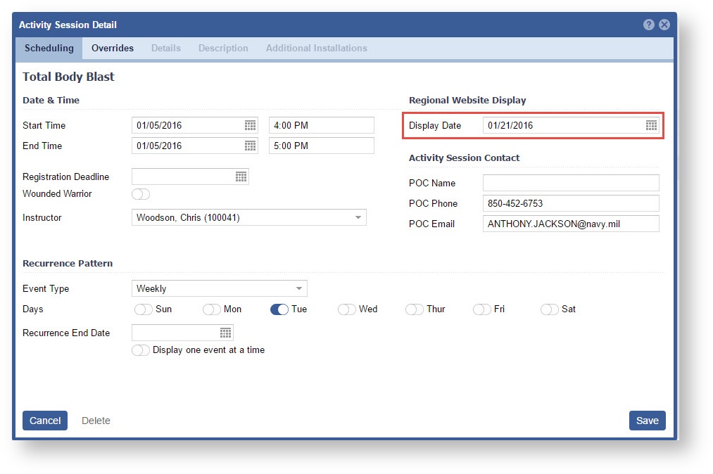 2. Enter Display Date, the Date in which you want this activity to appear on the Calendar.
