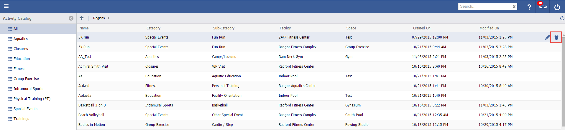 If the Activity has Future sessions linked you will not be able to Delete this record.