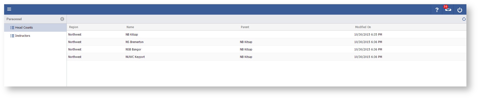 Your view is restricted by your Role. If you do not see the Region or Installations expected please contact your Administrator.