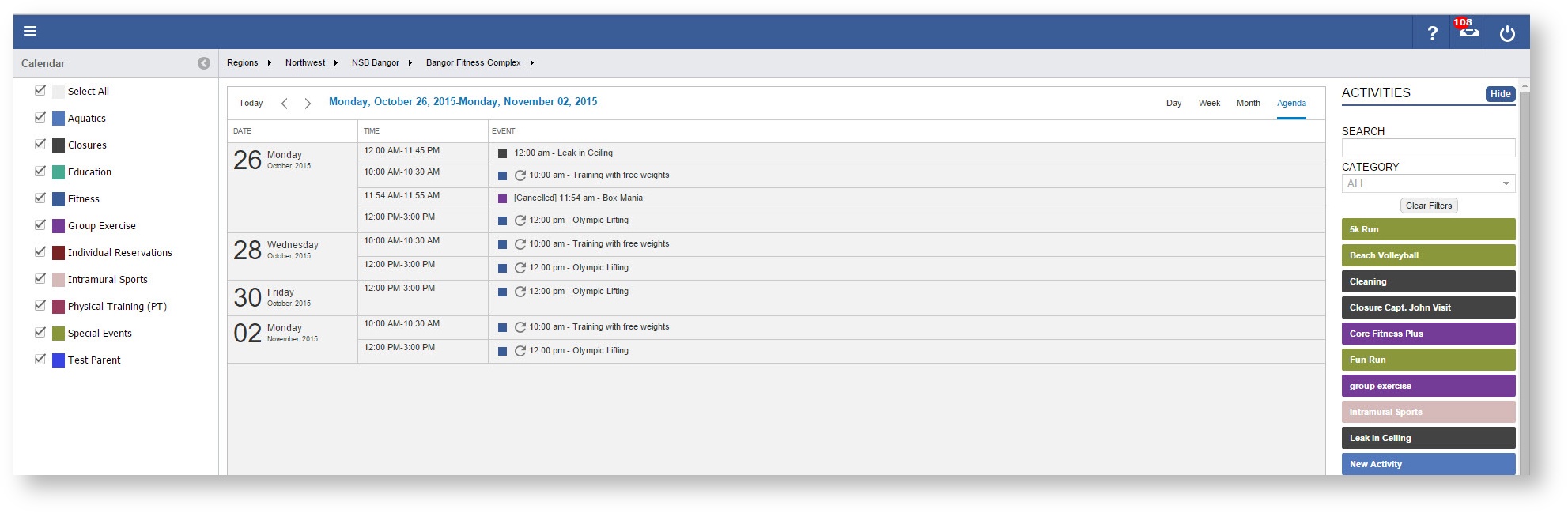 This view allows you to see the days Activities in an Agenda format.