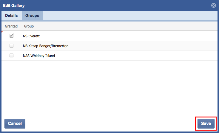 6. Select the box(es) of the group(s) you wish to include in the gallery.