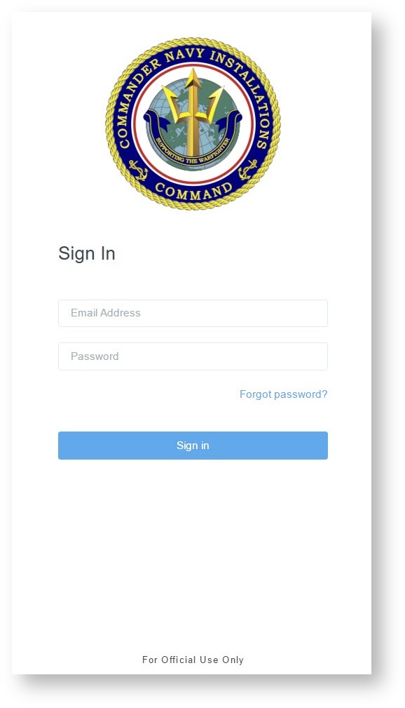 Enter in your email and password provided in the email from CNIC Navy GovCloud <no-reply@navymwr.org> and click Sign-in to proceed to the multifactor authentication step.