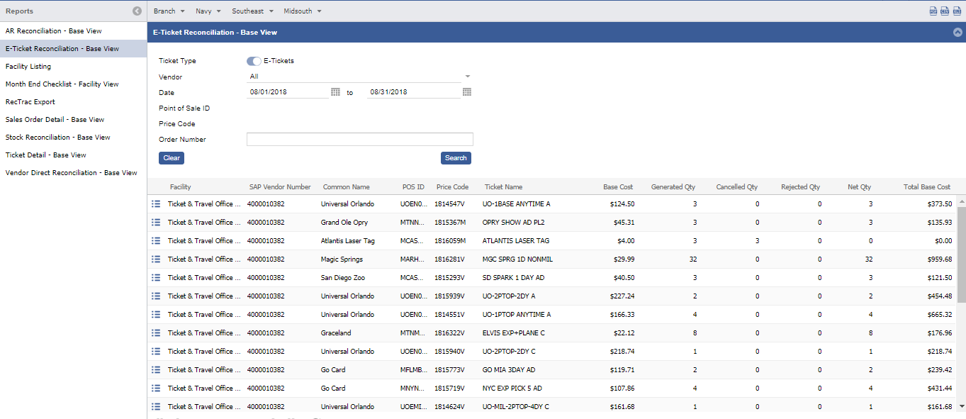Used to report on E-Ticket Generations and Cancellations for a given date range.