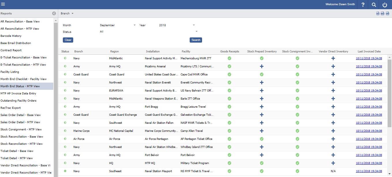 A checklist of month end closing requirements, per Facility. Displays the closing requirements progress & completion for the selected month and year.