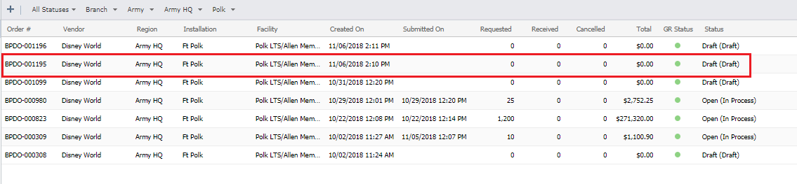 - Double click on the Base Order that needs to be edited.