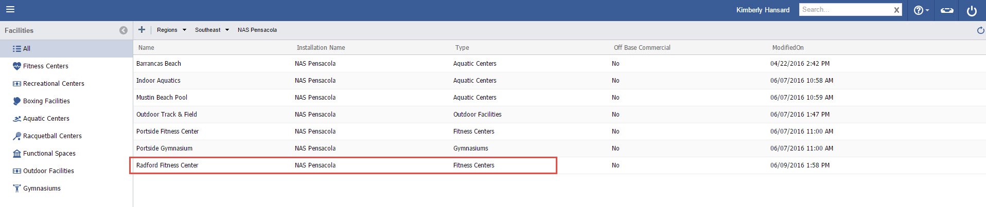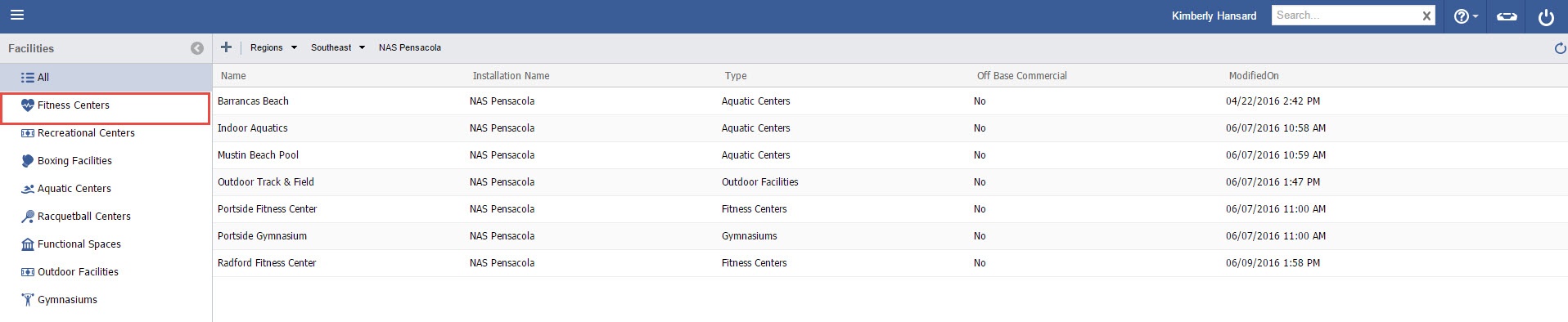 3. Select the appropriate Facility Type (In this case, “Fitness Centers”).