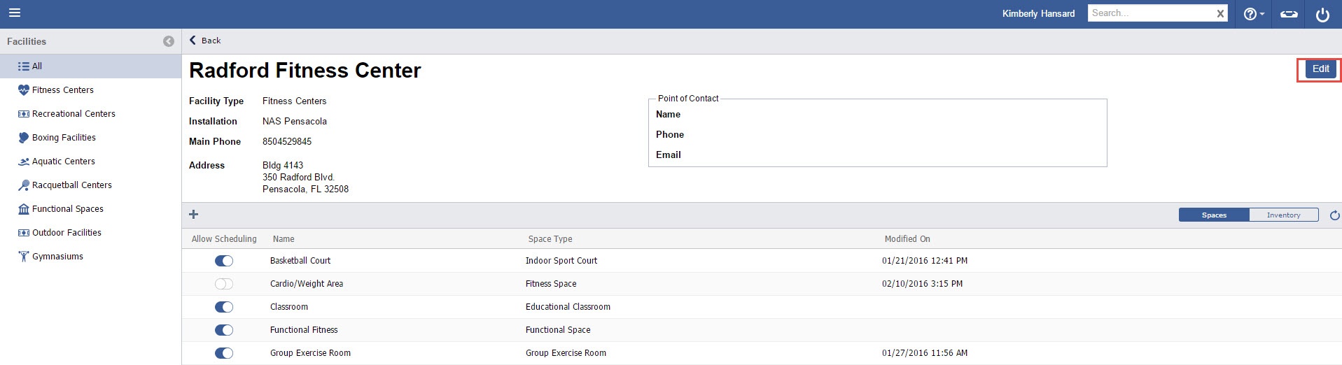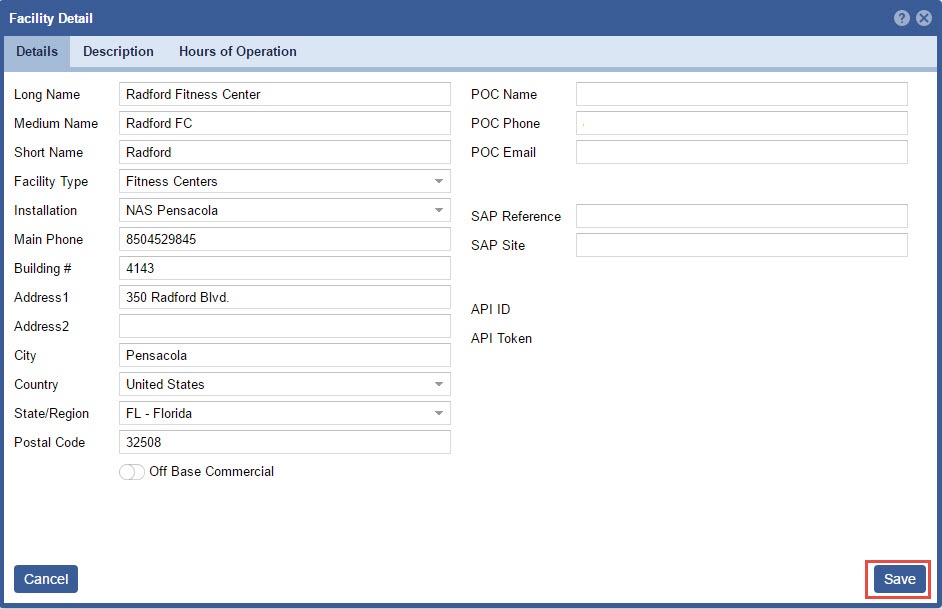 - Select the appropriate Facility Type (In this case, “Fitness Centers”).