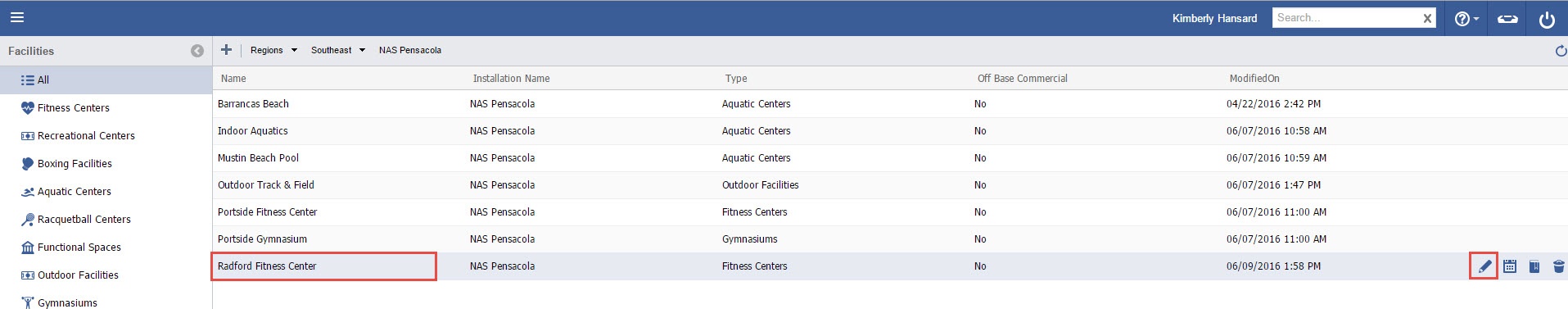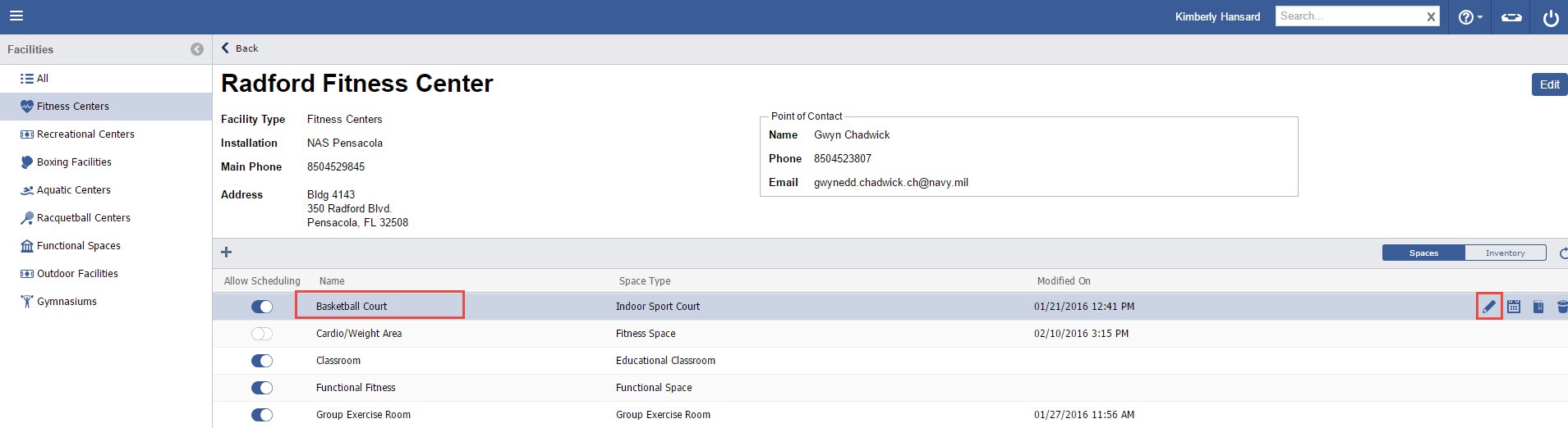 - “Double Click” the Facility with the Space needing to be edited.