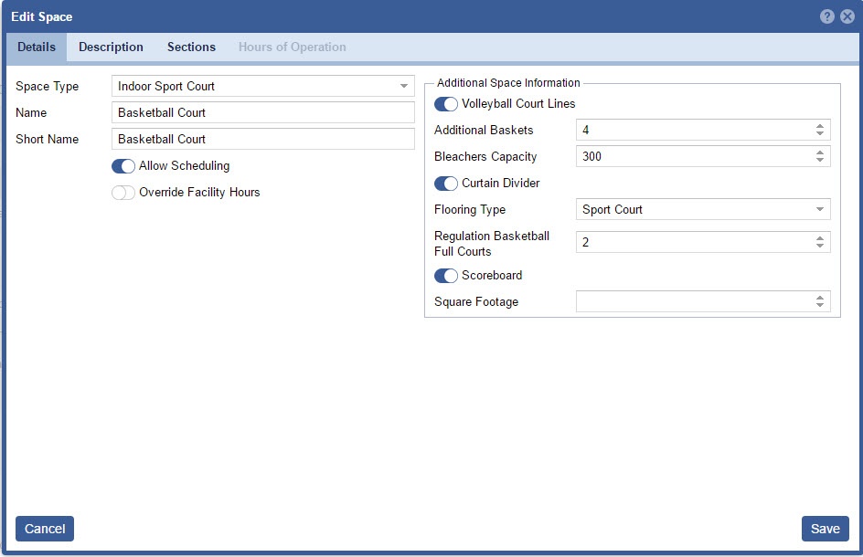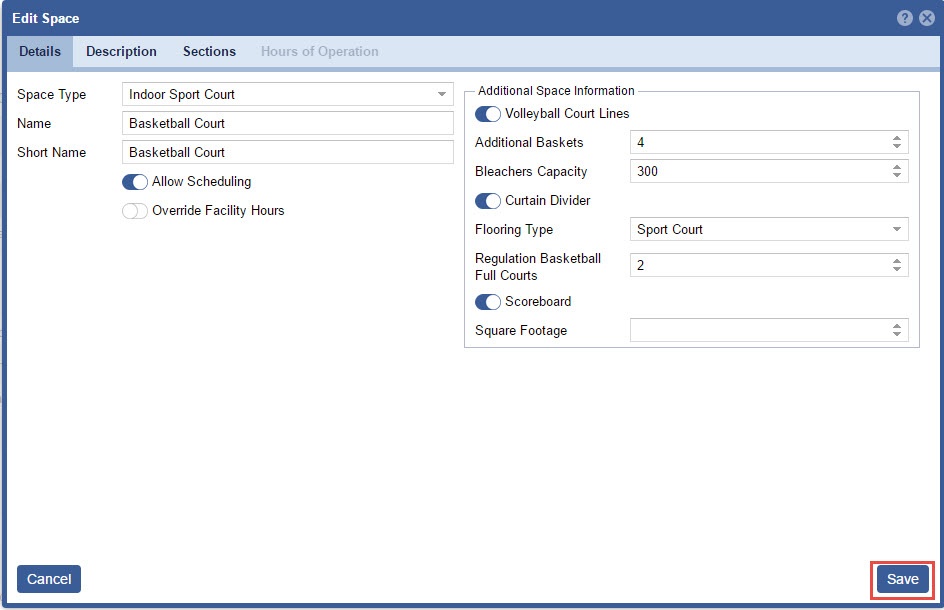 - Edit the Space Details
