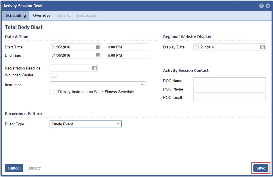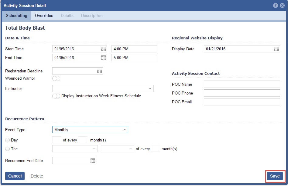 Activity Calendar> Add an Activity to the Calendar> Scheduling Tab