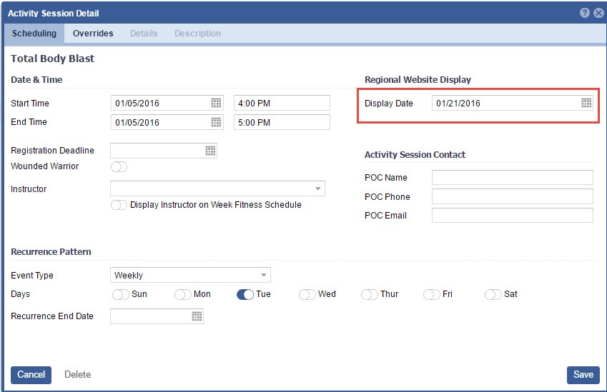 2. Enter Display Date, the Date in which you want this activity to appear on the Calendar.