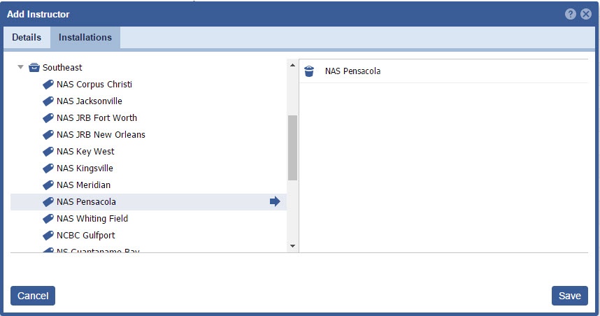 Note: An Instructor can be assigned multiple Installations.