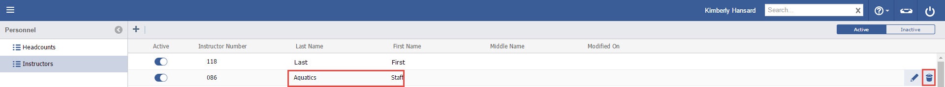 - Single click on the Instructor you want to delete and press the Delete key on your keyboard or hover over the Instructor and hit the "Trashcan" icon on the right side.