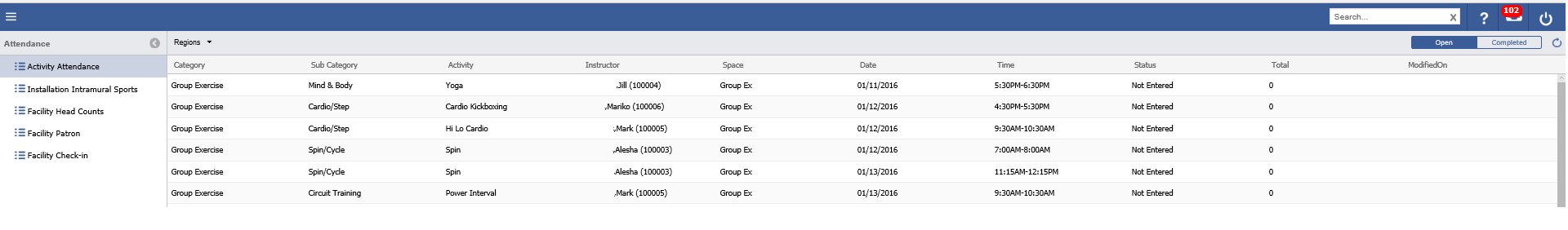 - Activity Attendance will contain scheduled activities from the activity catalog/calendar that have occurred.