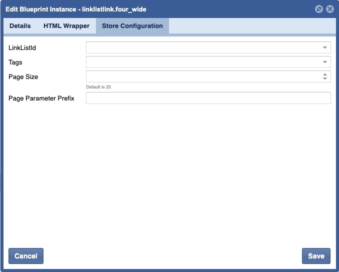 On the Store Configuration tab, each setting chosen will dictate the filter applied to the list and set the page parameters.
