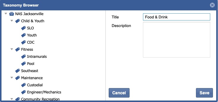 The Taxonomy Browser supports centralized management of Tag based classification hierarchies within the Experience Manager.