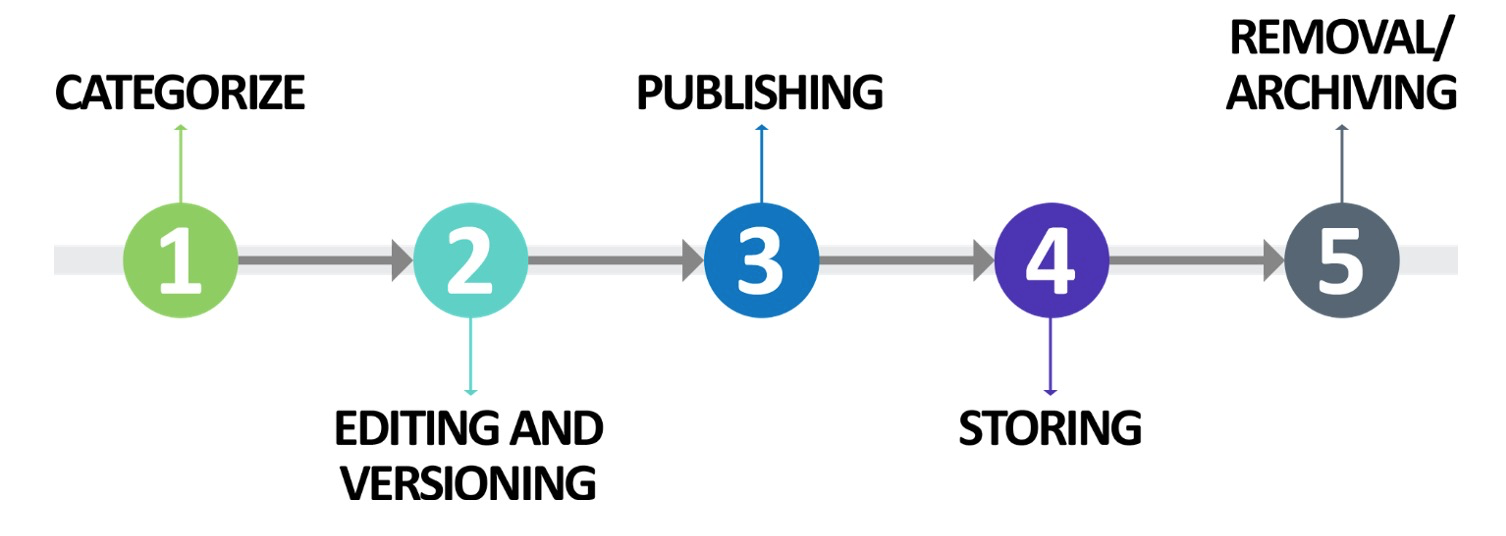 1 | Categorize- The use of Categories, Content Types and further organization through the use of tags create relational hierarchies of the content. |