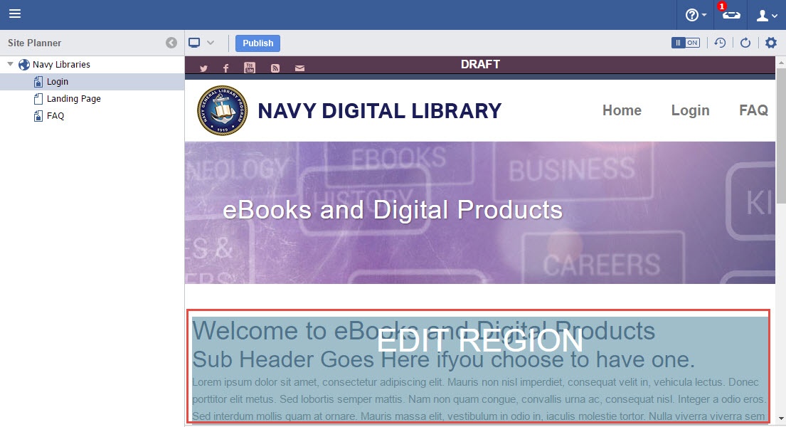 1. In the Site Planner, with a page selected, Click on the Edit Region Area.