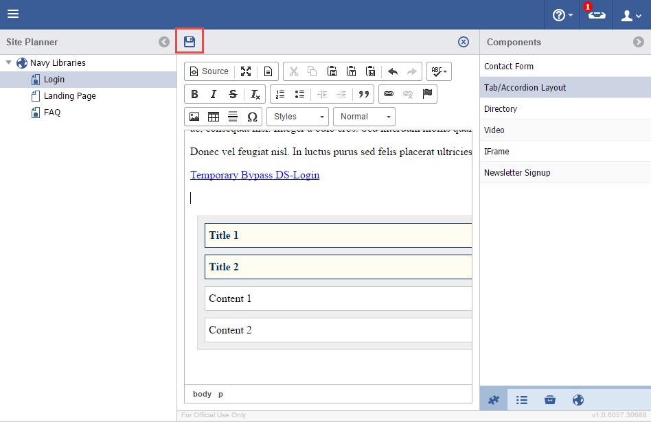 6. Name the First Tab and enter in the Content for the corresponding Content field.