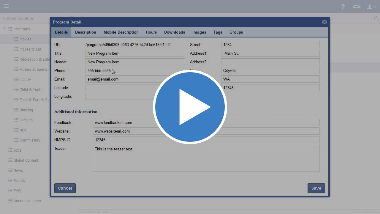 VideoStep-by-step guideClick on the menu icon in the top left header area. Click "Content Explorer".Click the arrow next to "Programs". Select a category to edit (In this case, Movies).Double click on the information to be edited.Edit necessary information.Click "Save".