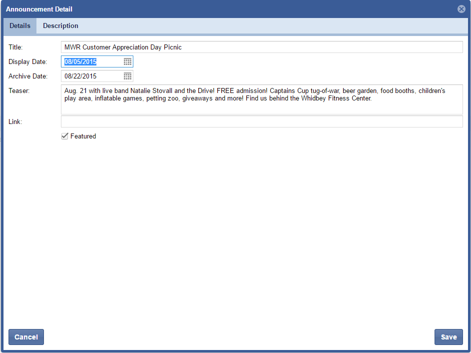 The Announcements Section allows the user to create, manage and distribute announcements that can be viewed on the website and mobile apps.