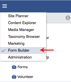 - The next step it to add the form to a site planner page. In the menu select the Site Planner.