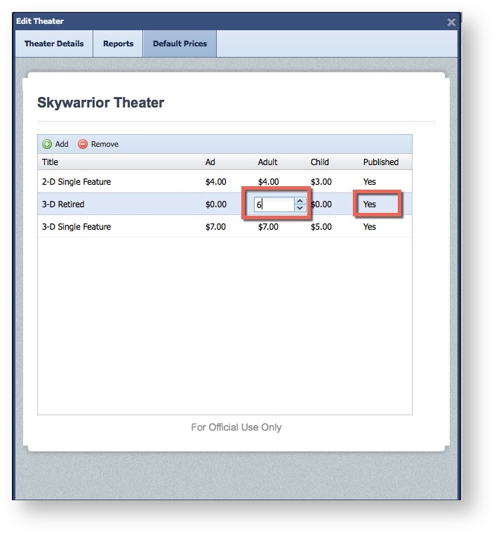 - Hit Tab, update the appropriate price column and toggle on "Publish" .
